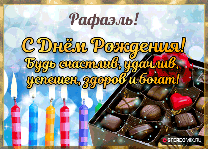 Рафаэль, с Днём рождения, сильный и мужественный, красивый и весёлый. Желаю тебе быть Кликните, чтобы скопировать поздравление