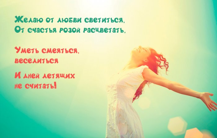 жизнерадостной и яркой, чтобы в глазах рождения. Пожелать тебе просто