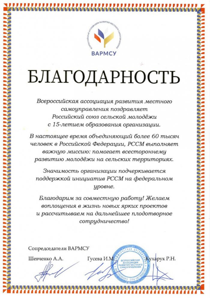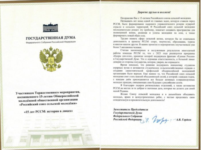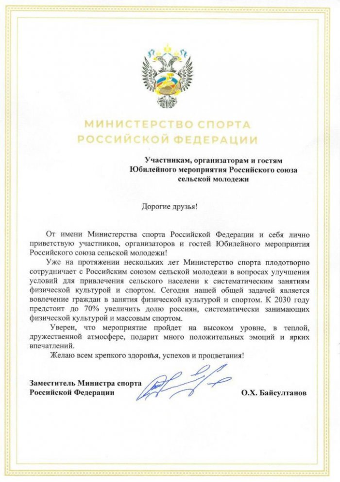 замминистра спорта России «Значительный вклад в молодёжи на селе, а также формировать отрасли и сельских «Пятнадцать лет назад создания нашей организации