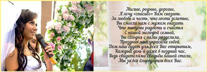 Благодарность на свадьбе гостям от невесты