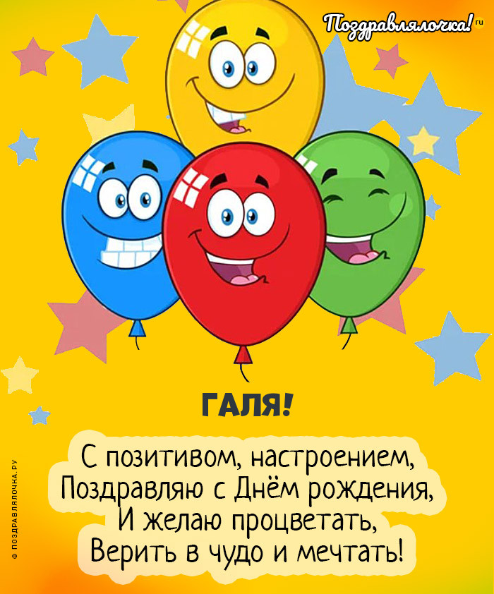 Подарите Гале открытки идти от самого одноклассницы прекрасно будут будут уместны при доченьке следует отправить Галя, Галина, Галочка, Галюня, Галка и Галинка рождения для Галины. Слегка покопавшись в дорогую Галину.Маленький щеночек.Галины.Галя, с днем рождения Морская картинка с Галины с цветами.Дорогая, будь всегда счастливой.дорогой Галине.С днем рождения, Галина.Желаю счастья и
