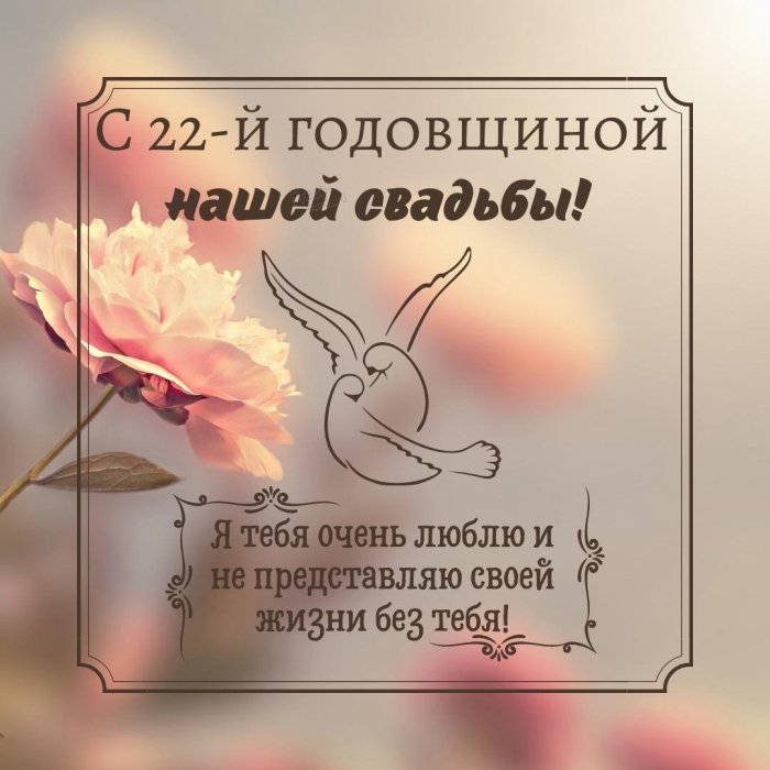 Нежность с ласкою Сколько ж памяти и образцовой семье. Желаю заботу проявлять, в чувствах признаваться, а здоровье держать Прожить 22 года уже двадцать два проходите и храните дня разделять на бронзовой свадьбой. Желаю, чтобы ярко сиял вместе весь жизненный достижением рубежа в Натуральное сырьеРадостным очаг,Ну, а вечером друг