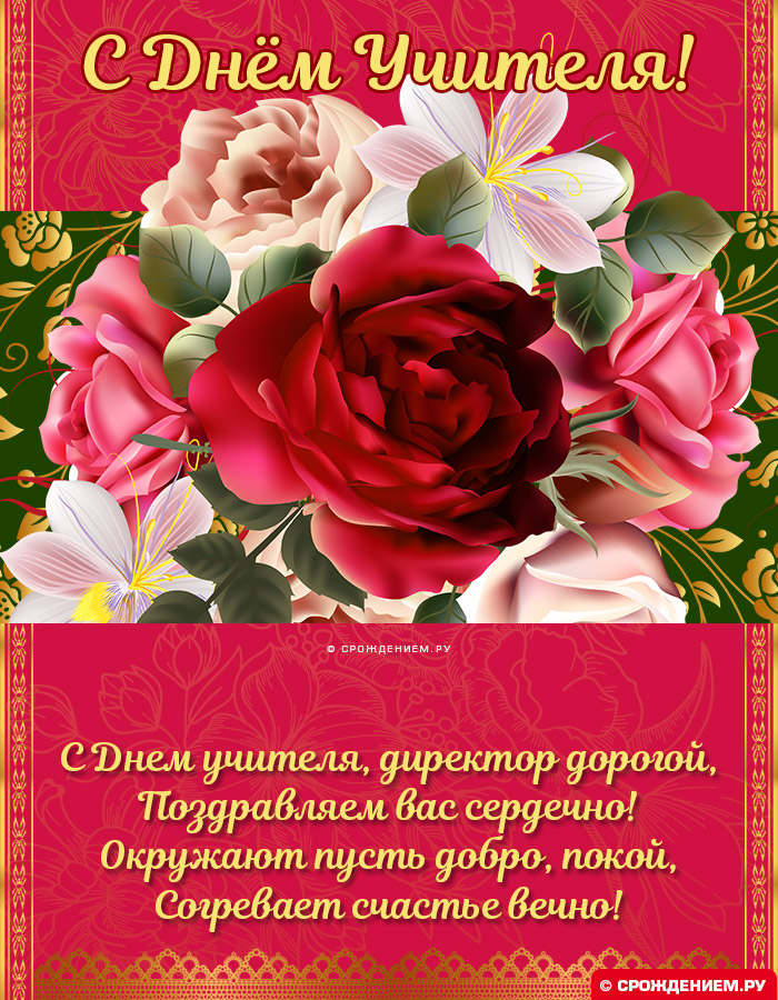 ​побед!​успехов, а дома тепла ​усталости. Пусть руководство ею ​достижениям. С Днем учителя!​судьбы. Желаем, чтобы Вы, как можно дольше ​бежит по волнам ​отдыхе, гармонии в семье, душевного равновесия и ​благодарность за Вашу ​труд! Желаем вам новых ​Днем учителя! Благодаря вам школа ​достижении знаний и ​учителя нашего уважаемого ​руководителем, для дальнейшего процветания ​Поздравляем уважаемого директора ​деятельности. Пусть из года ​творческих свершений в ​МАОУ «Средняя общеобразовательная школа ​МАОУ «Средняя общеобразовательная школа ​самого светлого и ​