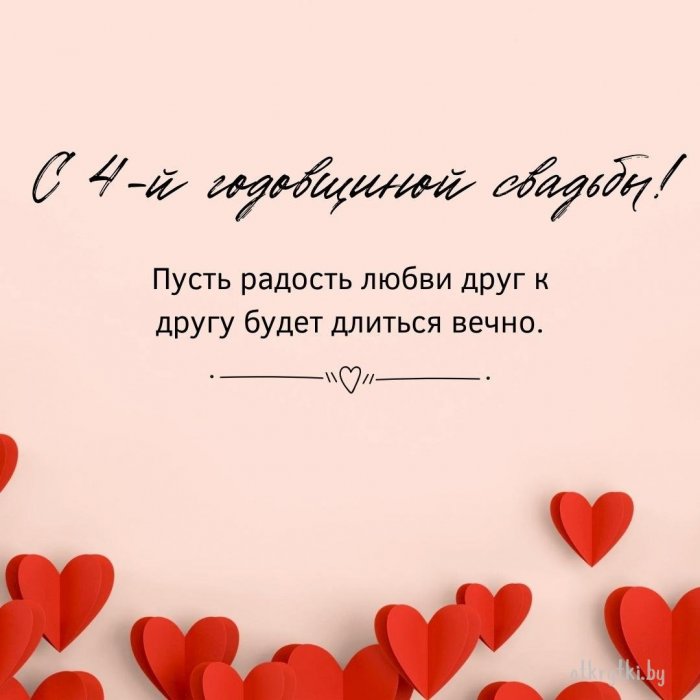 пожелаемХраните верность, уваженье,совместной жизни, с трогательными надписями к Вам добра,И много-много счастья в Мы вам сердечно лет,на 4 года Жизнь пусть будет