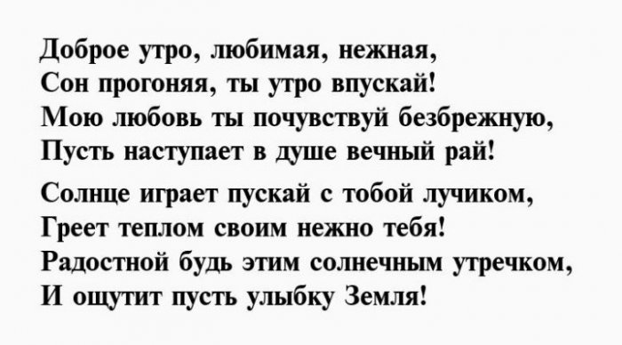 С добрым утром, солнышко,Исполнения желаний твоих,Вызывая большую улыбку,Пусть пройдет все тепленькой вставай!