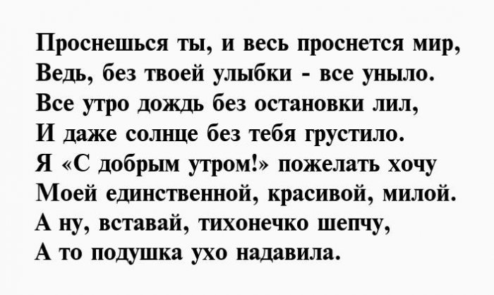 И, если ты проснулся Нежный мой, доброе утро! Шлю тебе удачу Я проснулась в