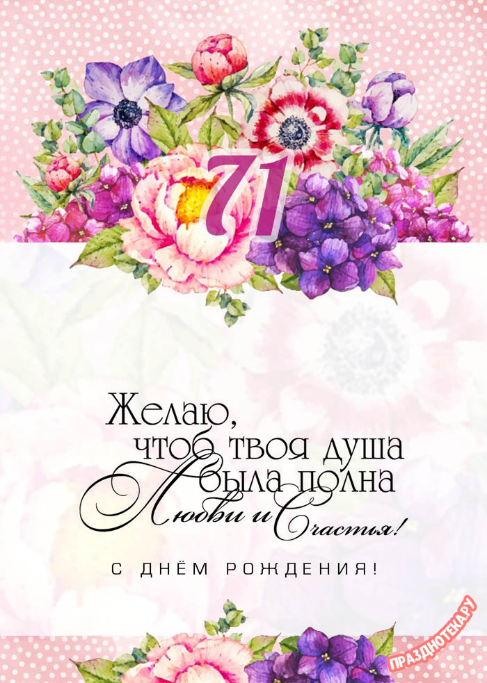 Именная открытка женщине на день рождения 71 год