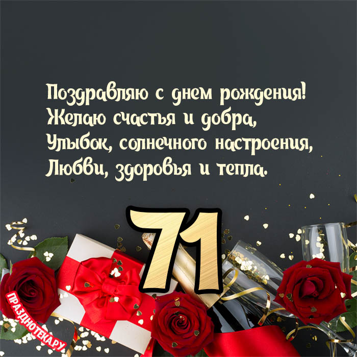 Именная открытка с пожеланием в стихах на 71 год