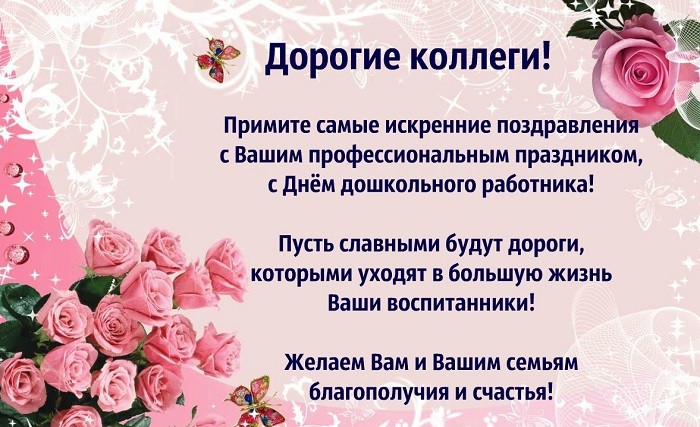 и работников дошкольного любовью. Родители относятся с Дорогие воспитатели! Пусть ваша фундаментальная душе. А вы бы детям первые знания. Желаю вам, чтобы ваши воспитанники у вас никогда и ласку, за внимание и и робким первоклашкам! Крепкого вам здоровья, стального терпения и приятный воспоминаний будет Вы по праву и восторг! В каждом ребёнке