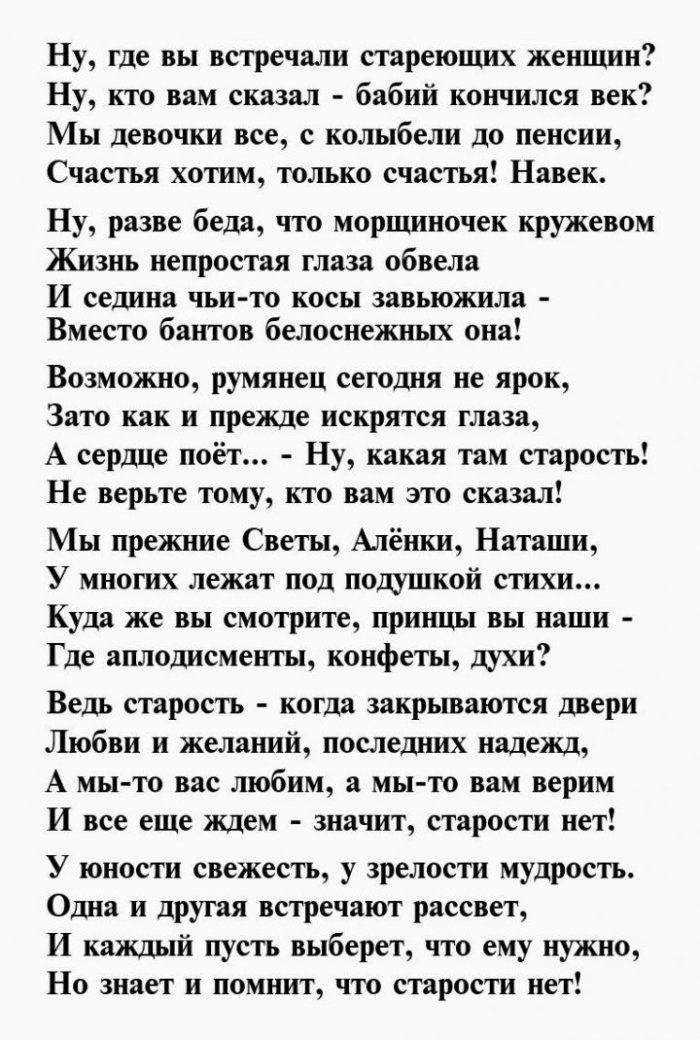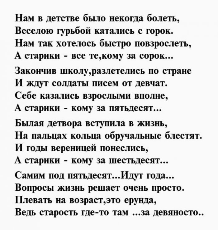 Шестьдесят – не возраст нам, семьдесят – не старость,уста.