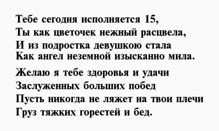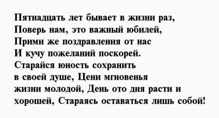 С юбилеем, ведь тебе пятнадцать!Пусть юбилейный день