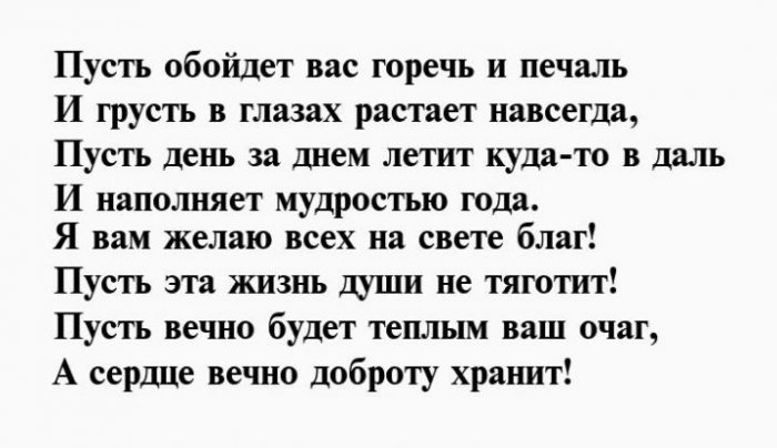Недостижимой, как звезда,Всех благ, достатка Вам, тепла.