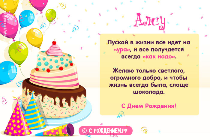 Принимай, Алсу, поздравления!Растворится на губах,Без тебя даже