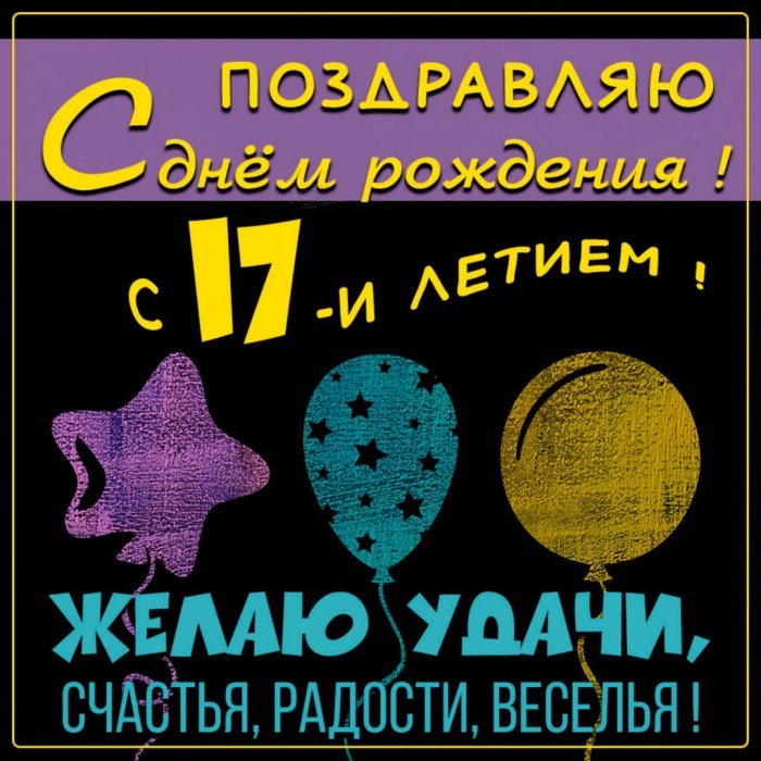 ​Внимай, природы красоту,​С 17 летием ​Поддержка близких так ​счастье повстречать​Успехов, смелых начинаний,​Люби, стремись и наслаждайся,​стихах​семнадцать,​