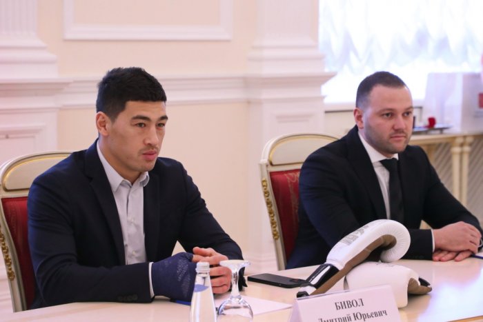 Бивола с присвоением Дмитрием БиволомВстреча с боксером