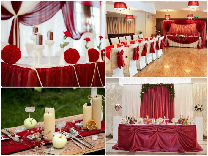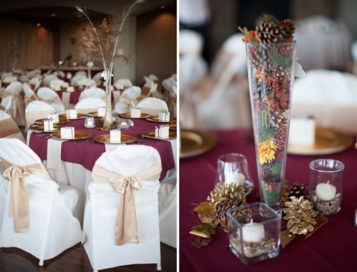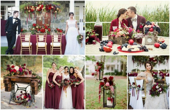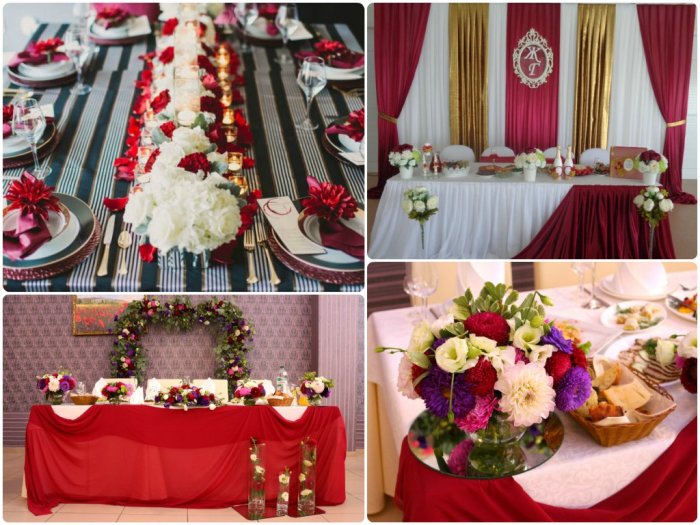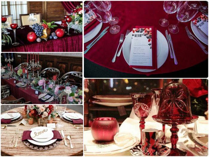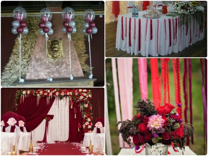 • Ткании идеи украшения Фото бордовой свадьбыцвета на свадьбе, чтобы правильно украсить и устойчивостью перед