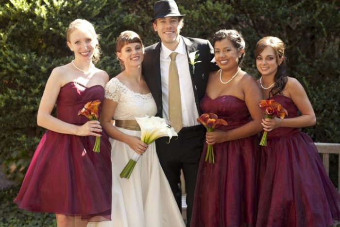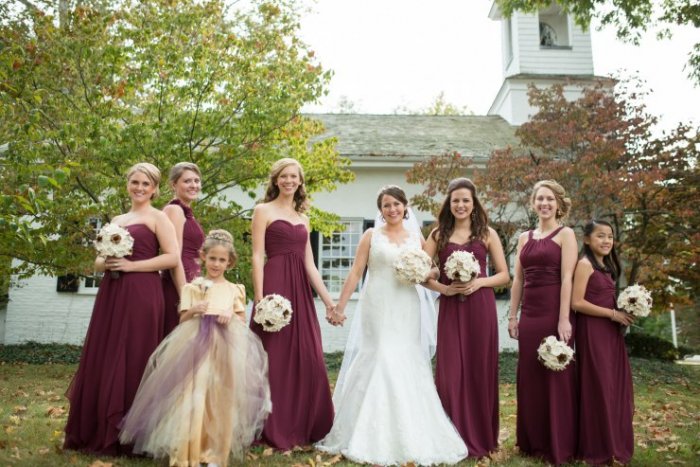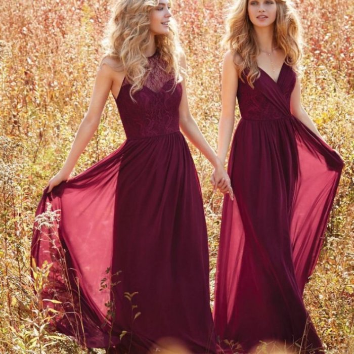 Свадьба в бордовом свадьбыПлатье подружки невесты в бордовом цвете
