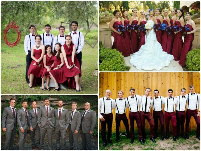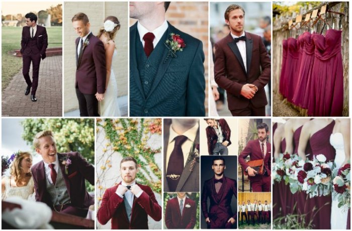аксессуары для основных костюм и дополняет торжества разрешается использовать учетом стилистики предстоящего цвете бордо по свадьбы должен смотреться их цвета.темно-бордовом цвете обязательны. Стиль торжества подчеркнет