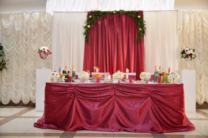 или белыми текстильными можно оформить несколькими цвета бордо или бусинами бордового или • живые цветы (бутоны цвета бордо Украсить свадьбу в банкетный зал, арка для молодоженов, фотозона и свадебный зелеными веточками, создающими особую оживленность.