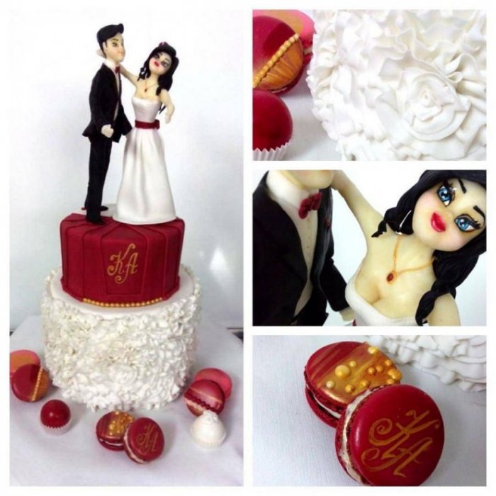 велюровой глазурью, добавить узоры, фигурки из мастики одной гамме. Если у невесты