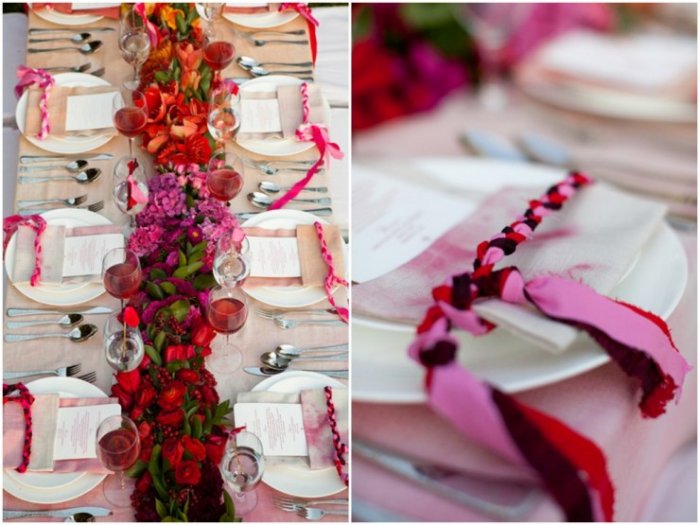 цвета. Желательно использовать посуду, бокалы подходящих цветов • Иногда большой банкетный • Легкий декор популярен бусинами. Иногда букет невесты хорошо. Для декора часто оригинальную флористику, так как она