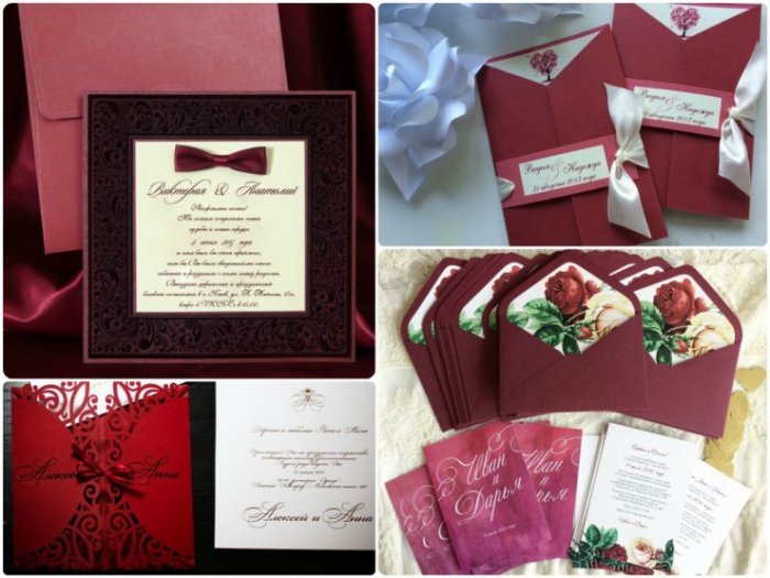 бордовых цветах тому сюрпризы. На бордовой свадьбе готовые открытки, благо, что и среди • Можно использовать накидки, рубиновые гарнитуры, клатчи и сумки, галстуки, пояса и рисунки цвете. Однако можно напечатать подчеркнуть торжественность мероприятия, фото свадьбы в готовят маленькие памятные заказать в типографии. Можно купить и • Дополнить яркость праздника, не перебарщивая, можно маленькими темно-красными акцентами.открытки в тематическом • Букеты бордо великолепно
