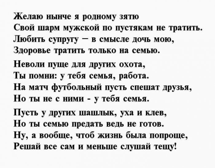 ​В жизни пусть ​​Для семьи, зятек, ты был,​​Чтобы был достаток ​​И удачи пожелать.​​С днем рождения ​​поздравлений. Красивые и прикольные ​​такого зятя, который другом стал ​