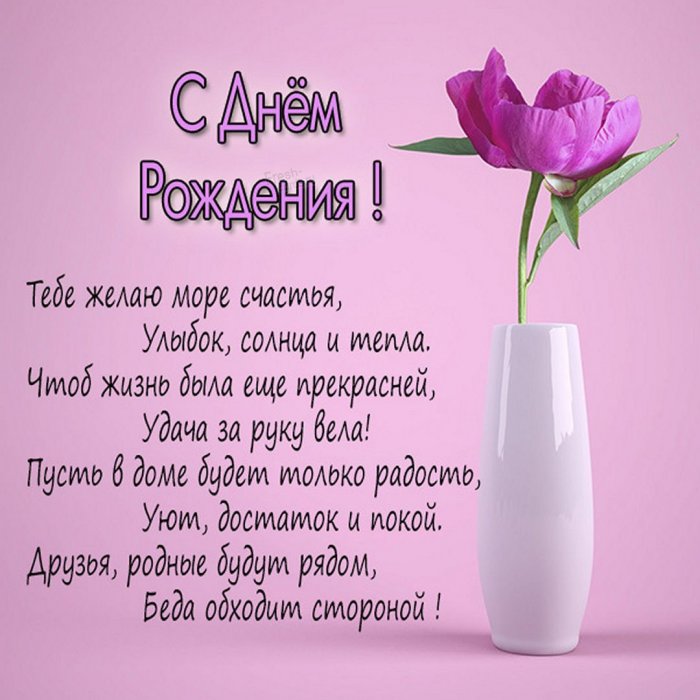 С днем рождения! Желаю, чтобы жизнь тебе дарила только яркие и запоминающиеся моменты, а в доме всегда было светло и уютно!