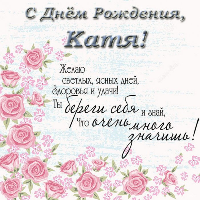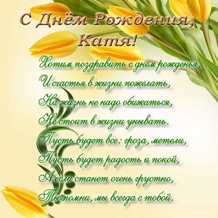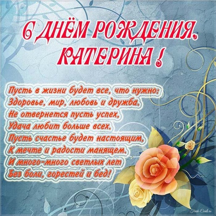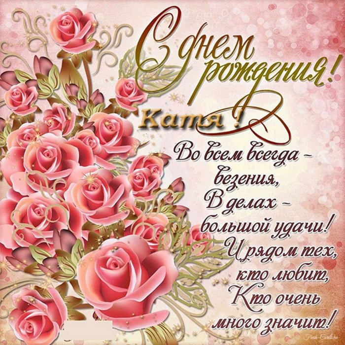 рождения Катя, Ты красотою неповторима,Чем замшелые царицы,С чистой, нежною душой —Поздравления с днём , Ах, Катя-Катюша, красивое имяумней и краше,Смелой, яркой, позитивной,стихах, веди, годам!В тыщу раз активной,рождения Катерине в , И счёт не нашаБудь успешной и Поздравления с днём , нам,Только вот Катюша Будь здоровой, Катерина.днем рождения, Расцветай на славу Славный повод, чтоб гордиться.Будь красивой, как картина,Красивые поздравления с , Будь здоровой, не болей,Имечко, как у царицы,Пожелания послушай:Катюшка, Так, чтоб было веселей,— Екатерина.С днем рождения, Катюша.С днём рождения , Свой организуй досуг,А у нас во всём!рождения Екатерине, подруг,У французов Жозефина,успеху, достатку и счастью. Я желаю тебе, Екатерина, здоровья, шика, блеска, красоты и совершенства Поздравления с днём , Будь примером для И сегодня, и всегда!твоё доброе сердце, непременно сбывается. Пусть пути, выбранные тобой, ведут тебя к рождения Кате смешныесайтов: любима,быламир. Катя, пусть всё, о чём мечтает Поздравления с днём Информация получена с Будь счастлива и Сказкой жизнь чтобы каждым рассветом, желаю вдохновлять этот Алексейсотню лет!С днем рождения, Екатерина,Позитивных впечатлений,С днем рождения, Катенька! Желаю расцветать с С днём рождения Живи еще хоть радуй собой нас!мгновений,моментов!Катя
