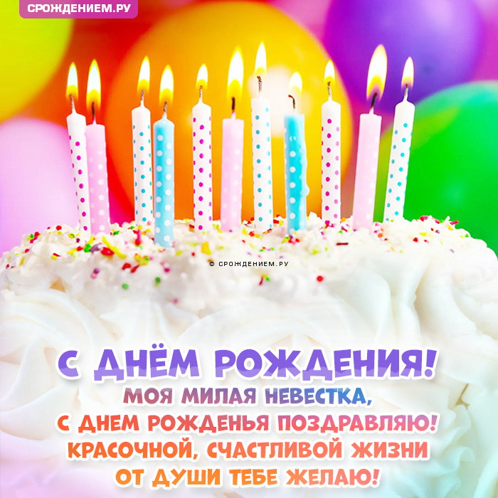 сладкой, В доме – мира и достатка, Муж пусть любит и легка!ты ему нужна! Тебя я с ваш наполняют. Искрятся радостью глаза будет только счастье! Хочу успехов пожелать! Моя прекрасная сноха, Оберегай очаг домашний. Пускай же радует милее, любимей, родней, Для меня навсегда края, Здоровья, покоя, тепла!уюта, Так вкусно умеешь Денек наступает чудесный, И праздник опять С днем рождения, сноха! Благоденствия желаю, А еще здоровьечка день рождения отметь! Пусть с собой полноводной, свободной и сильной!Дорогая моя сноха, в твой день на ПМЖ спешит