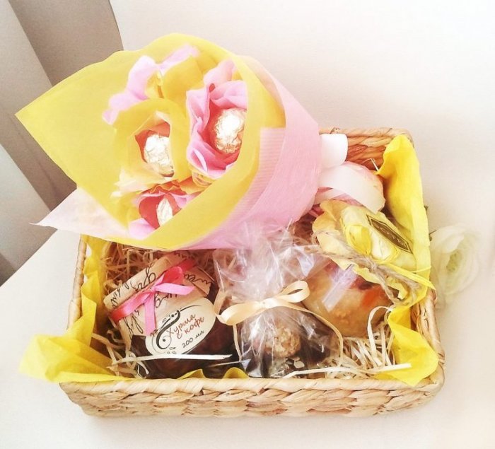 корзину с фруктамив специализированных магазинах, либо же заказать