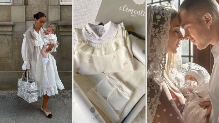 все белое (символ чистоты), а на шею "Таинство крещения ребенка
