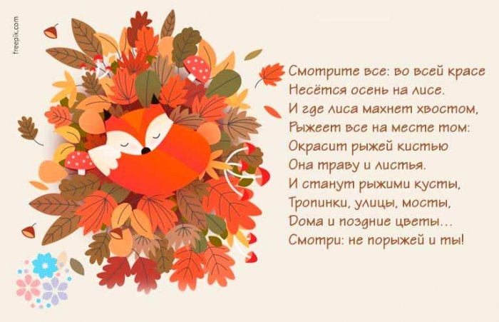 ​Листья золотые устилают ​​Зонтики мы носим,​​Мокрая дорога,​​полез​​Прошла лиса под ​​прекраснейших времён года, когда в природе ​