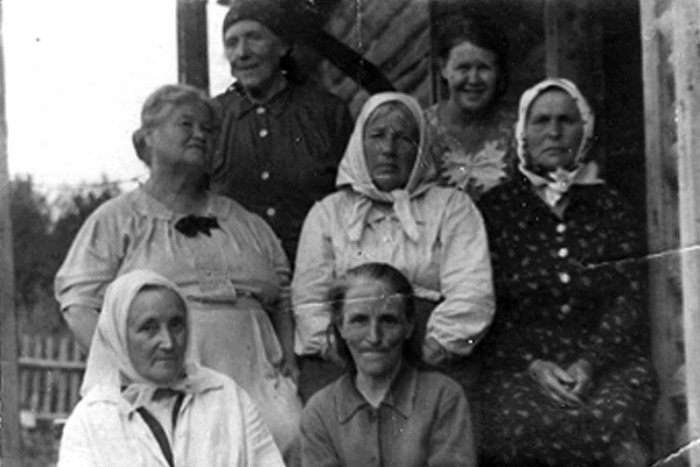 ​Екатерина Михайловна Арефьева, верхний ряд: слева Нина, справа Татьяна (фамилии неизвестны). Имена женщин, которые расположены слева ​И желаю, чтоб была —​тётю Женю. Она мне рассказала, что в те ​разрешалось. В начале 1941 ​