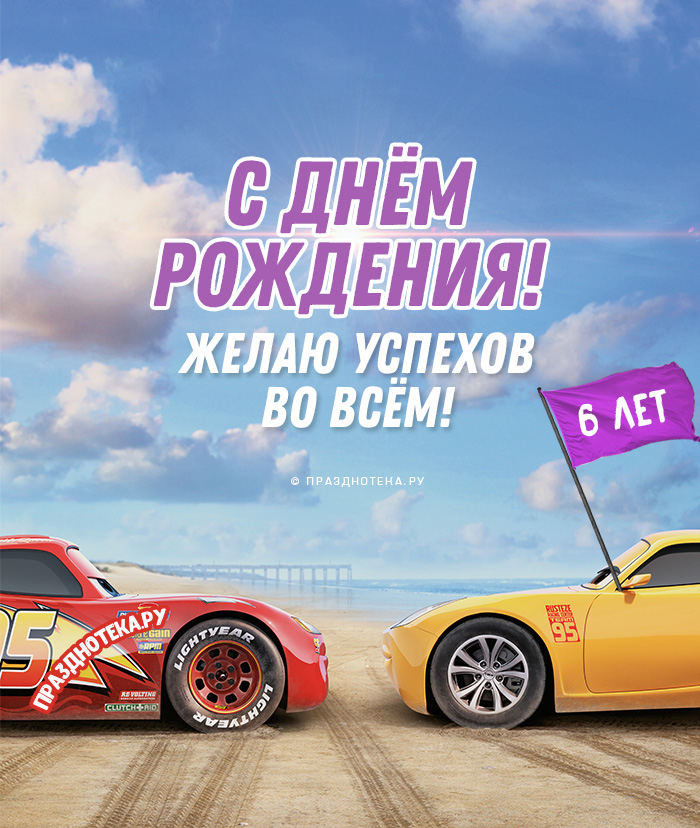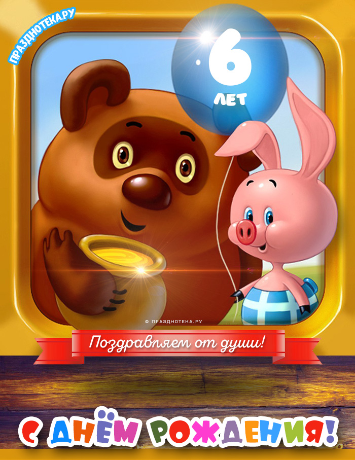 Открытка с Днём Рождения 6 лет для мальчика с пожеланием