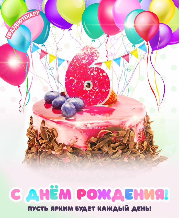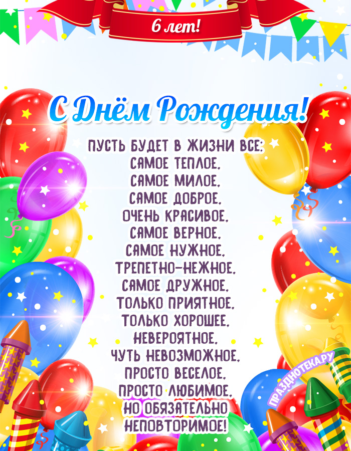 Открытка с Днём Рождения 6 лет для девочки с поздравлением