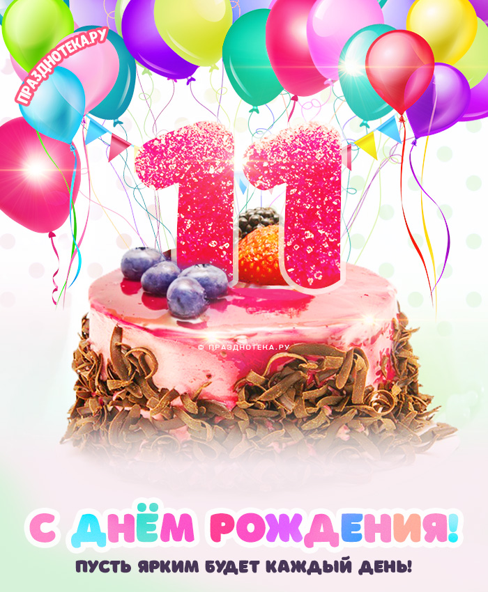 Красивая открытка с Днём Рождения 11 лет
