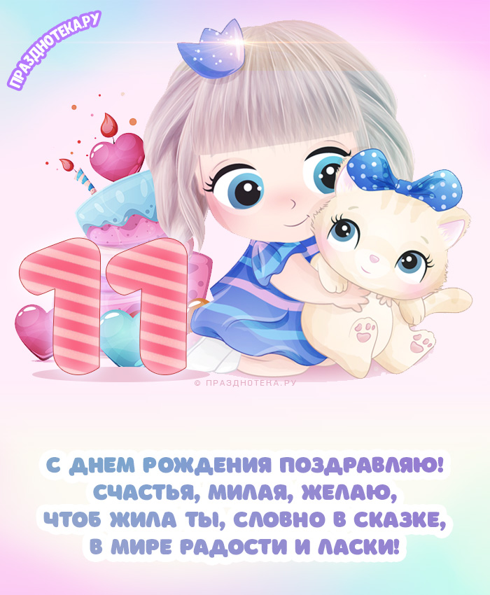 Открытка с Днём Рождения 11 лет для девочки с поздравлением