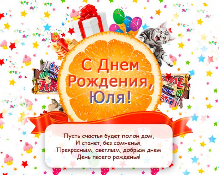 Юля, с днем рождения ты, Юля, вместо солнца!