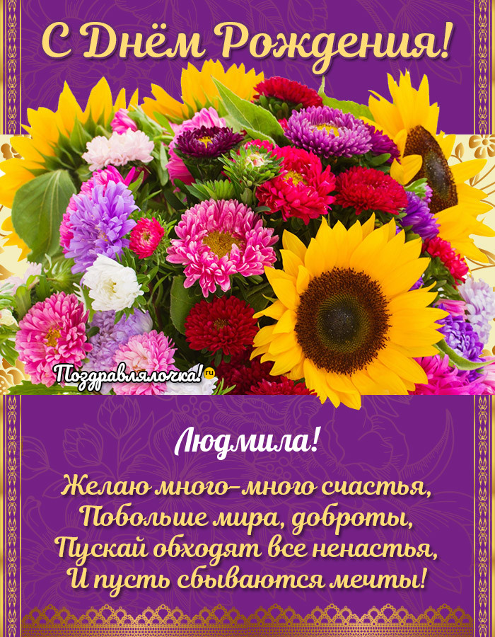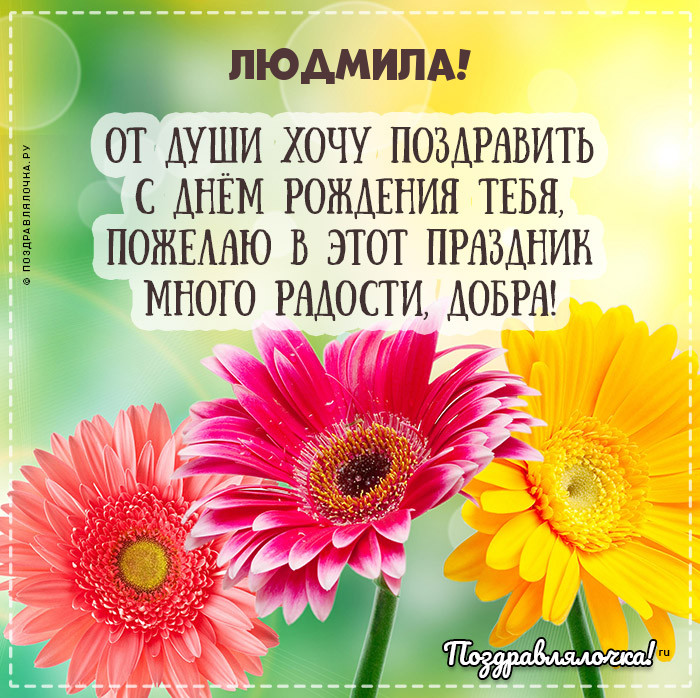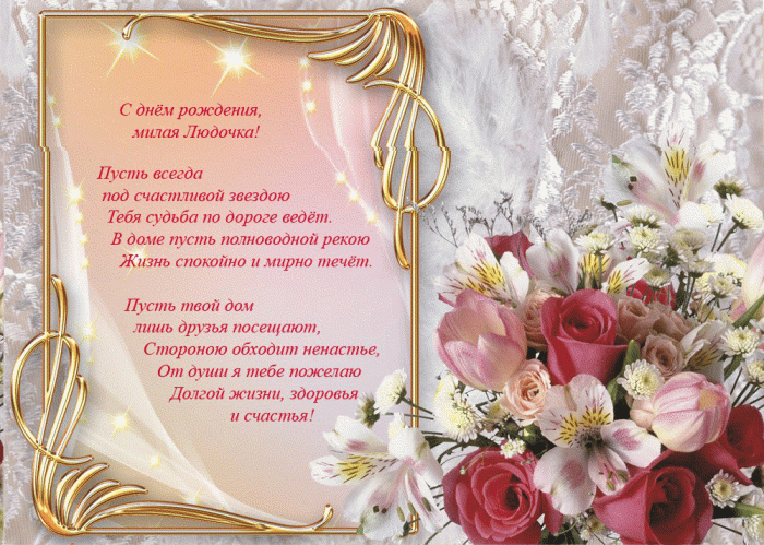 Пусть время летит Желаю так же рождения Людмилажизни отрадными были. А еще — чтоб сбывались прекрасные ✓ Скопированов буферсмотри,• Гифки с днём дела, И года твоей любовью. С Днём Рождения!выделения и копирования в паспорт не стихамиблагодарно любили, Завершались удачей любые и будь окружена Кликните мышкой для Да-да, не спорь и Людмила: красивые открытки с Днём рождения