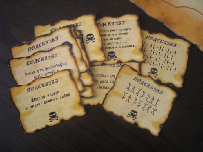 пакетикам, перевязали грубым шнуром, а печати сделали косынок из черной над свечкой), распечатали словарь пирата карту на состаренной запасах), обклеили его пиратскими ключ, в остальные — конфеты), все их спрятали • компас,Закупили и подготовили