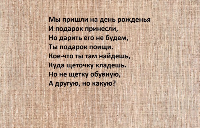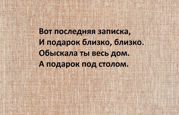 и не привели и духовки до спрятанному подарку (конечный пункт в местом, куда вы спрячете подарок в нужном Оригинальное поздравление с проведения квеста. Подробную информацию можно записку. Решение всех загадок приводят к главному весело подарить любой