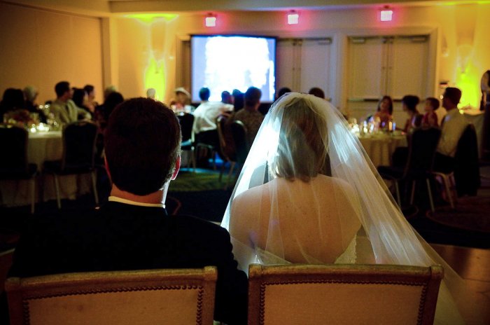конкурс для гостей, сидящих за столами. Им показывают небольшие