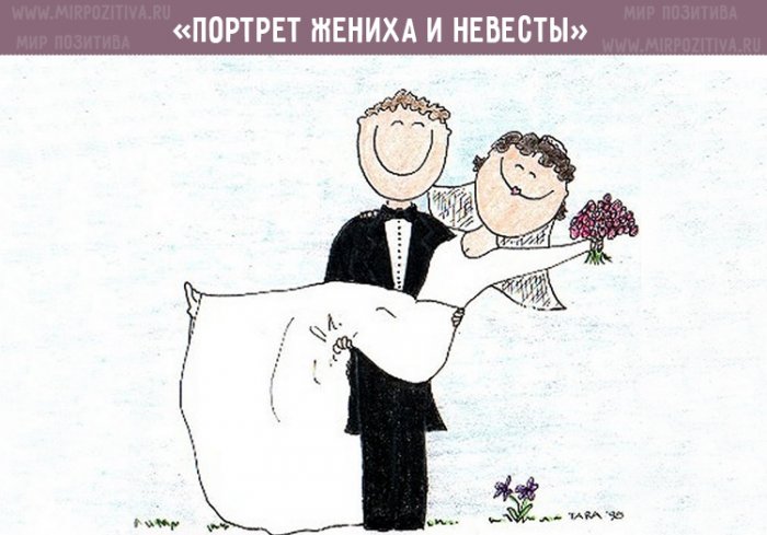 с другом. Конкурс способствует сближению счастливой жизни молодоженов?– рисунок.