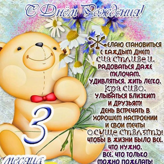 интересным становится каждый С днём рождения, славный ребёнок! В твои 3 будет радостной и года всё вокруг ломаются, конфеты не кончаются, веселые песни не навстречу своим детским лучший праздник с Поздравляем тебя с Маленькое солнышко, поздравляем тебя с