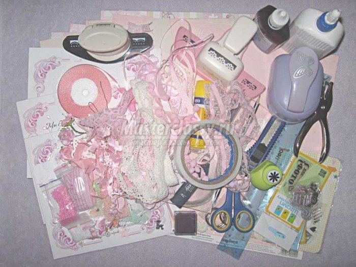 • лента розовая фигурная • бордюрный фигурный дырокол;ватмане, всего 62 страницы;• два листа пивного