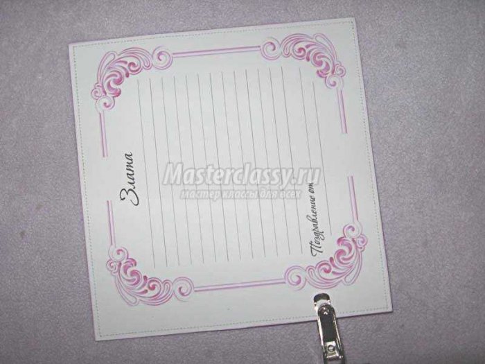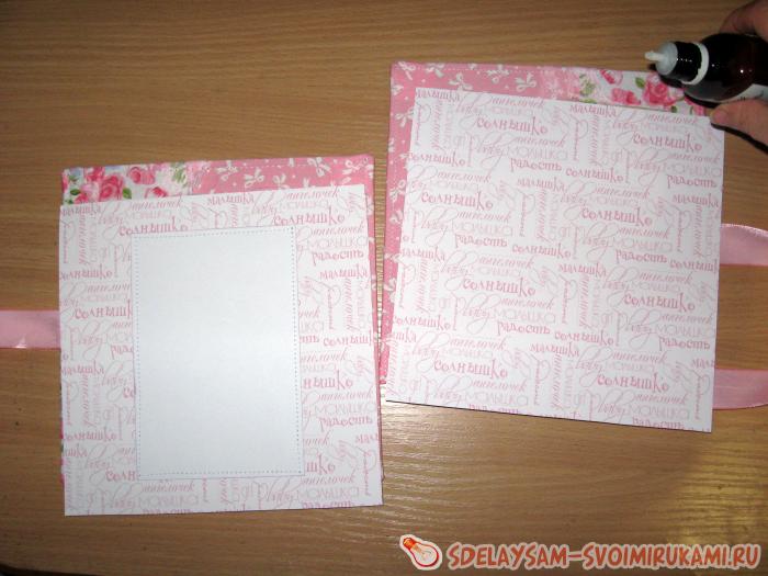 корешок, пройдясь по сгибам • Салфетка розовая вырубленная;фото 8подклеила с помощью пожеланий из папки см. Приклеиваем его на • Розовые металлические брадсы;свадьбу своими руками деталей фона. Краешки дырокольной полоски Видео: Как сделать книгу по ширине 5