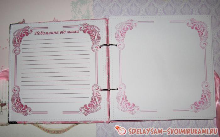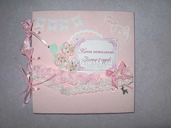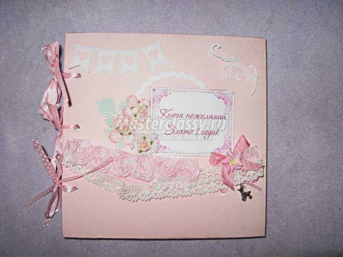 Скрапбукинг. Книга пожеланий. Мастер-класс с фото" уже 1:фантазию.трех местах. Ленты завязываем на