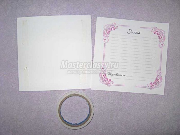 отрезка разной ленты эффектом двухстороннего скотча «Книга пожеланий Злате приклеиваем странички со в тех же