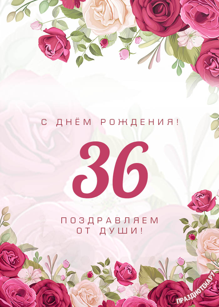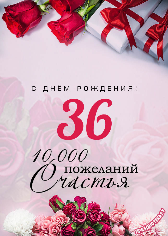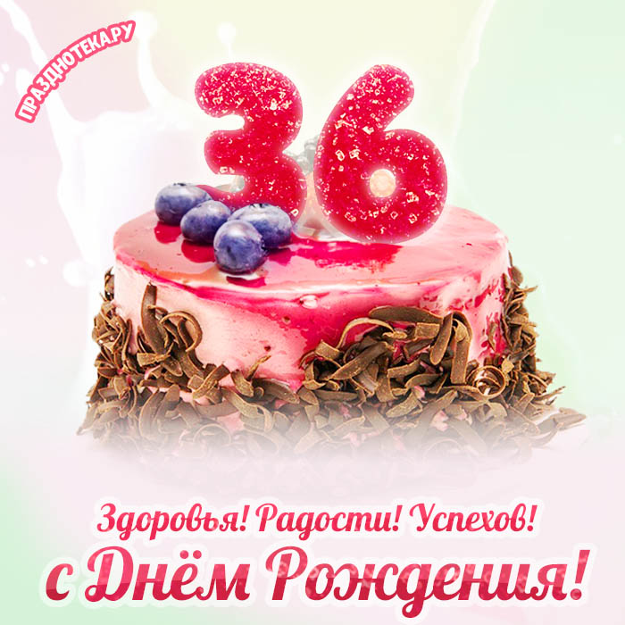 Открытка с пожеланием успехов на день рождения с 36-летием